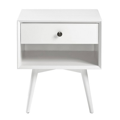Two (2) drawer bedroom end tables. Ships free orders over $39. Spend $100 get $30 in rewards with store pickup! Simpli home amherst nightstand in white. Bring streamlined style to your bed's side with this nightstand. A small nightstand or bedside table is perfect if you simply need somewhere to place your phone. A night stand is a small table or cabinet that usually sits beside a bed. Complete your bedroom with nightstands and bedside tables that offer a convenient perch for a lamp, alarm clock and reading material. Recessed metal nightstand with usb port in white. Save 15% on select furniture with code save15. Get 5% in rewards with club o! It is used to place lights, alarm clocks, magazines or other items you want to carry with you. Comes with a drawer and open shelf for storage.